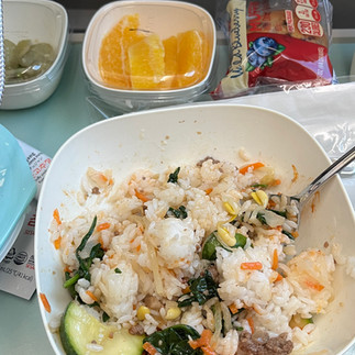 Tucked into my Korean Air pillow, blanket, and slippers, I basically screamed inside when the flight attendant handed me my first meal: bibimbap! It was actually delicious, even for plane food.